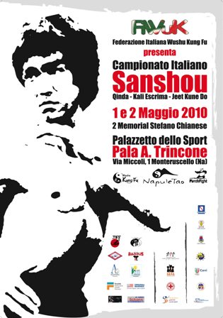 Nel mese di Maggio 2010 la Campania si tingerà di Azzurro , si terranno dopo molti anni i Campionati Nazionali di WUSHU –KUNG FU “”SANSHOU –KALI – JEET KUNE DO “” L’evento avrà come location il PALABUTANGAS nella splendida area puteolana, ricca di storia e cultura per lo sport .